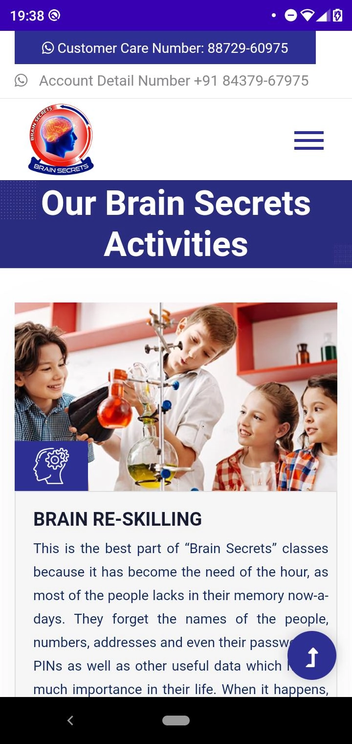 “Brain Secrets” is an Extra-ordinary unique concept Which not only improves the memory, Even it enhances the power of Calculation as well as it builds a great confidence in any ordinary Person.<br>This Educational Concept has already been tested on thousa