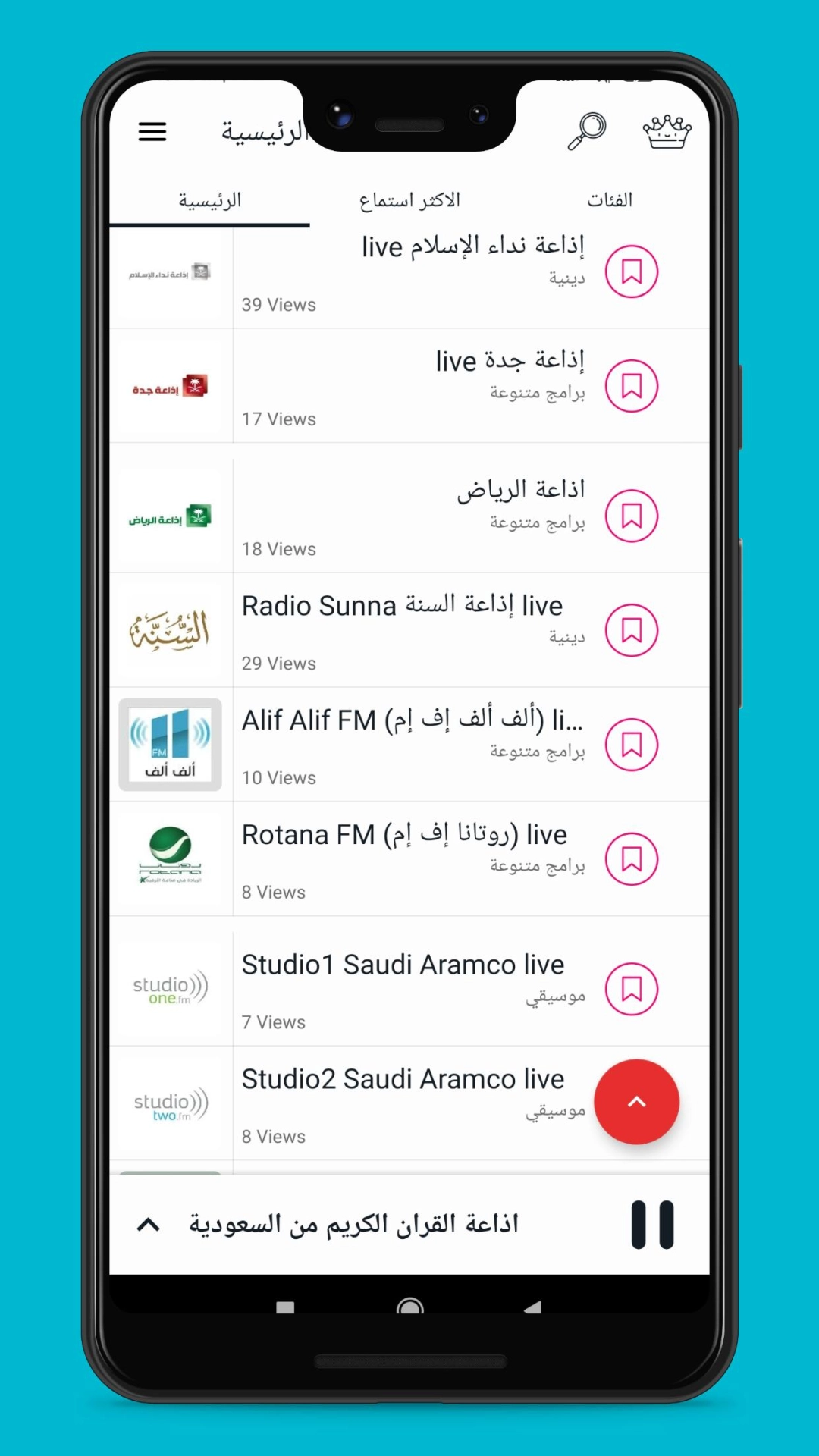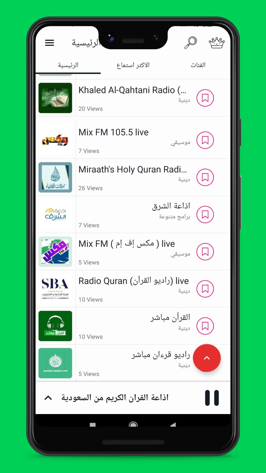 Saudi Radio application is a free radio application that contains a lot of Saudi and Arabic radio stations live broadcast. With a modern, beautiful and easy to use interface, Radio Saudi Arabia gives you the best experience when it comes to listening to F