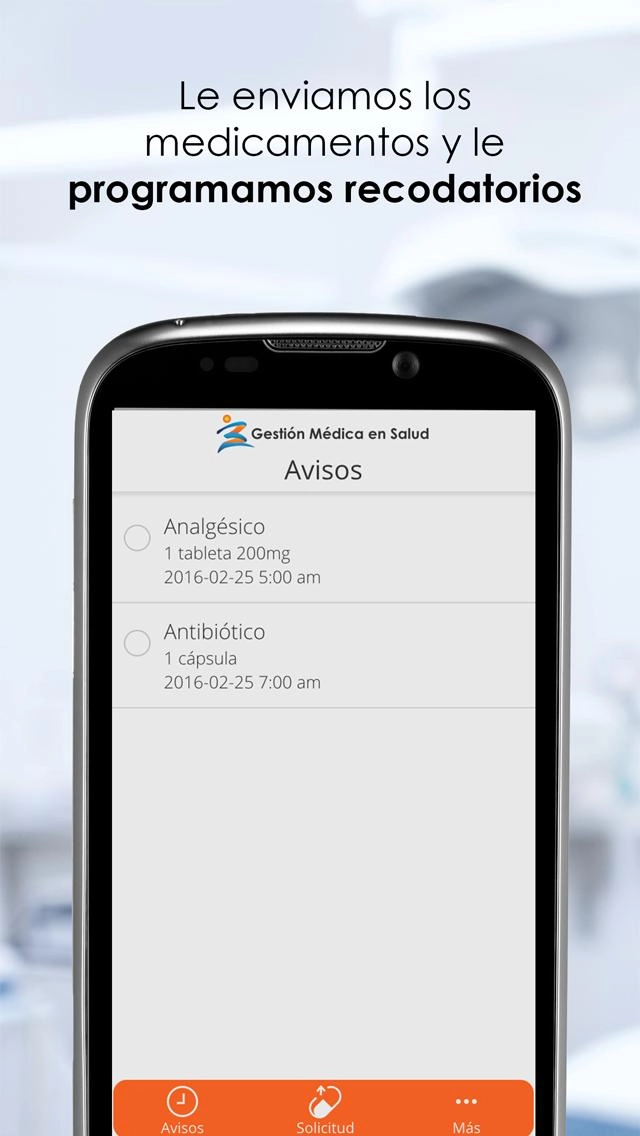 GMS App is an amazing application that facilitates the production and consumption control medications. Our application is not a virtual drugstore is a program delivery of drugs and therapeutic help.<br><br>You send us the medical formula and we will send
