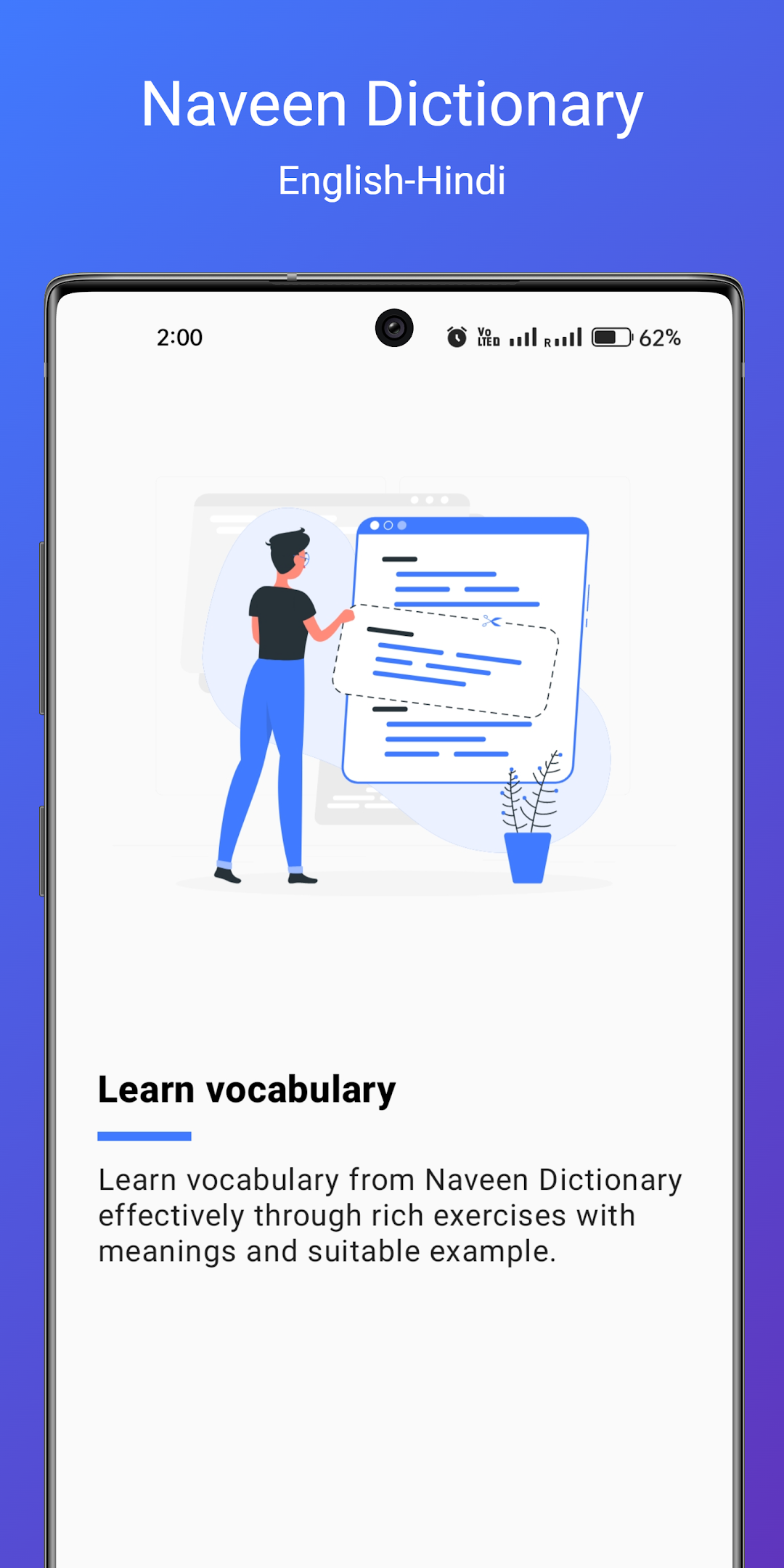 Naveen English to Hindi Dictionary is a light weight android dictionary app works offline and gives faster results without any hassle. Naveen Dictionary is a catalogue of more than 50000+ English words with their Hindi as well as English meanings. This app also covered 5000+ Phrasal Verbs, 5000+ Verbs, 500+ Proverbs and a list of some of the most useful 1000+ English Daily uses Sentences.