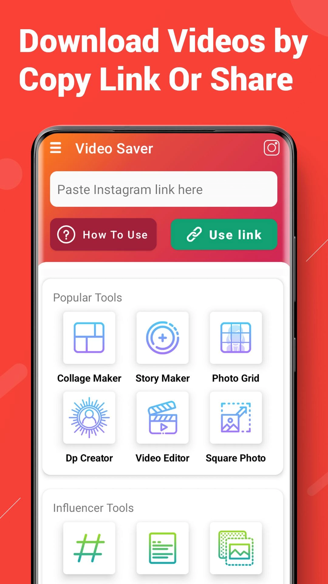 All Video downloader is very easy to use. All you have to do is copy and paste link or share link to All video downloader. <br><br>Main Features:<br><br>- Download videos for social apps very quickly<br>- Play downloaded videos offline with the built-in p