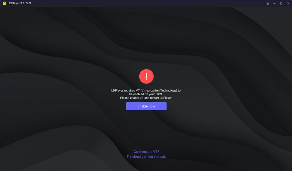 In addition, you can launch LDPlayer to check whether VT is enabled. If it isn’t, LDPlayer will automatically display an error screen and guide you through the process of enabling VT.
