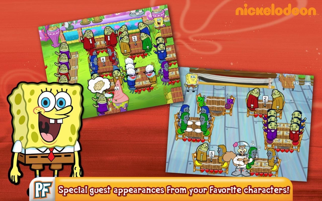 Play 7 fun-filled levels FREE in SpongeBob Diner Dash! PlayFirst and Nickelodeon team up to bring you the dish-flipping fun of Diner Dash in the hilariously wacky world of SpongeBob SquarePants for both Android phones and tablets. Soak up 5-star feeding f