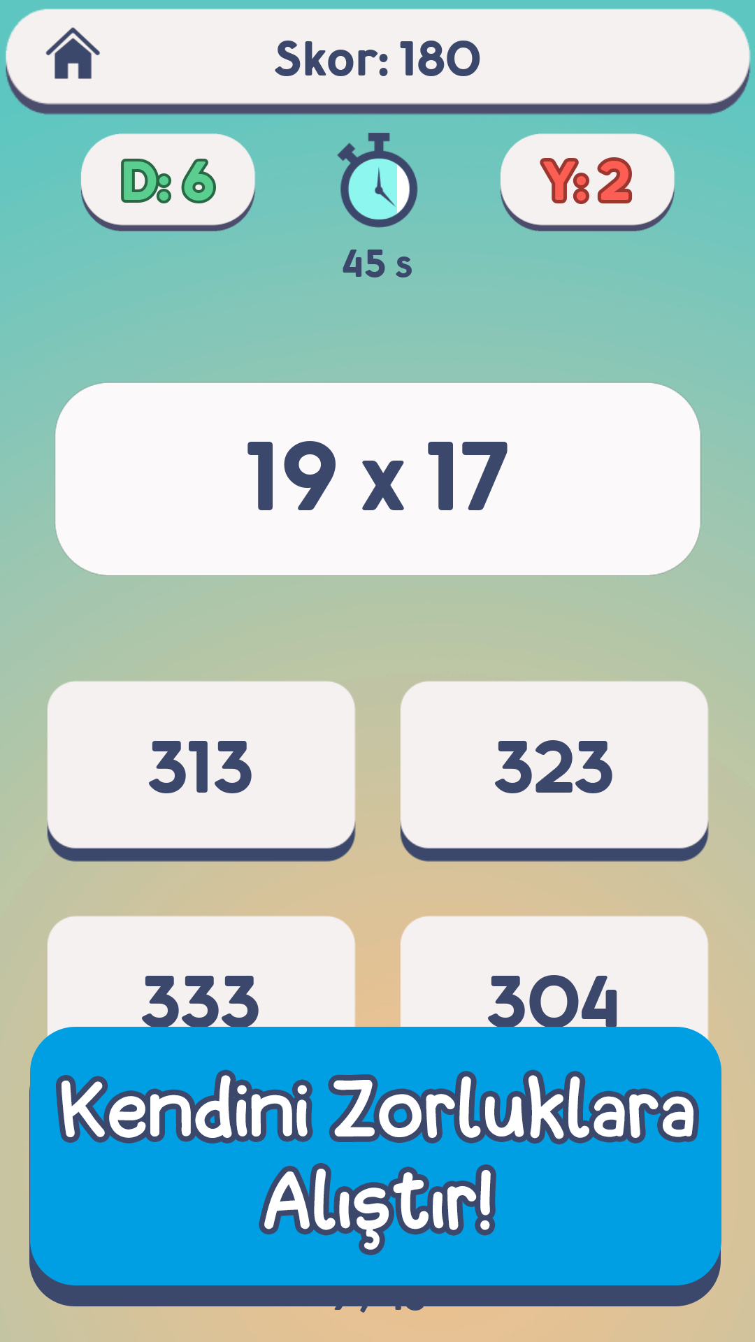 Test: In this mode, you will be able to solve as many questions as you want between 5-100 about the multiplication table. The quicker you answer the questions, the more points you will earn. This mode is perfect for testing your multiplication tables and thinking quickly.