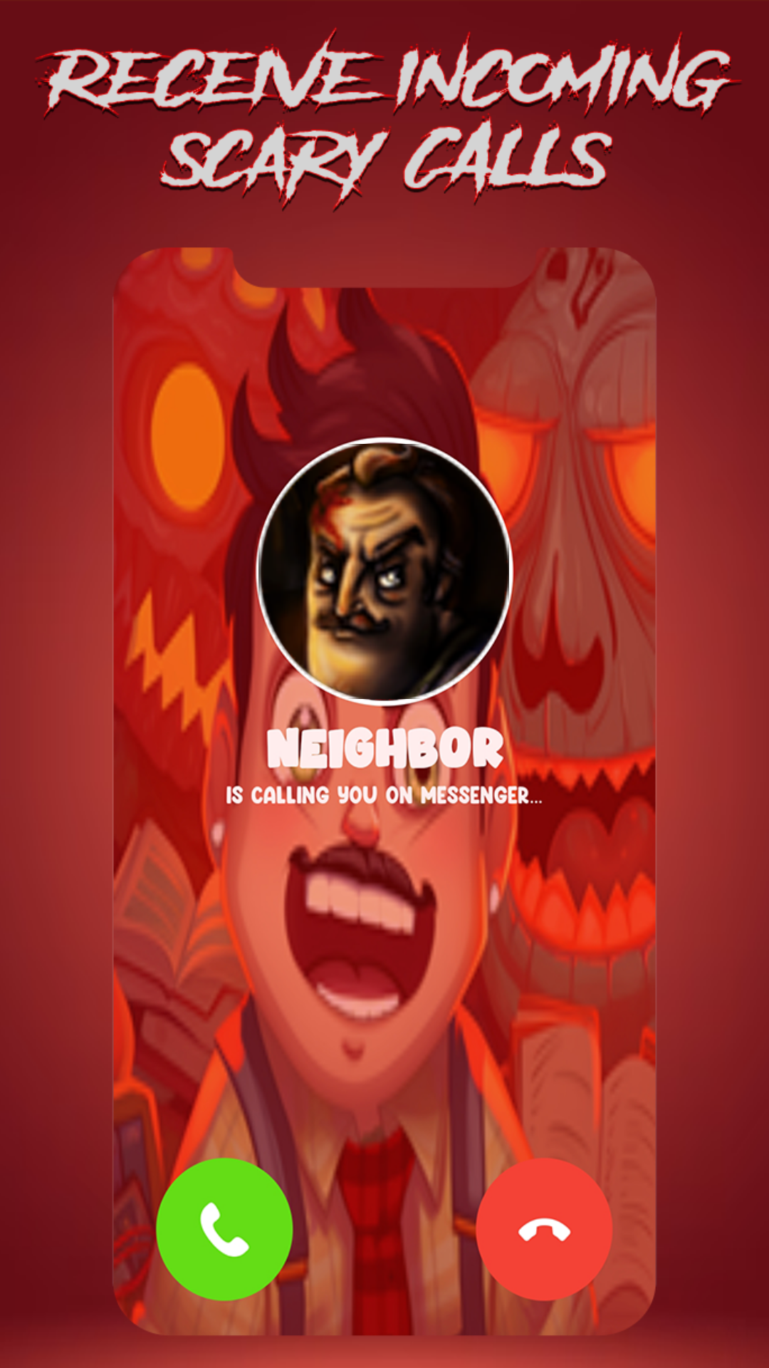 "Scary Neighbor" Mod Video call and chat is a fake call video simulation app , you will receive a fake call and video call that looks like a real call, it is a joke game that allows you to prank your friends, bye receiving a call or a video call or a chat with Scary Neighbor Mod, you have also the possibility to set some high quality wallpapers on your phone background, its a multiple option dial call app with a variety of calls and video calls and conversations bot.Features: